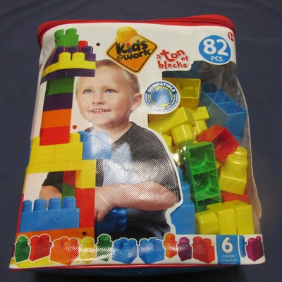 New Kids Work A Ton Of Blocks Building Toy Large Play Set 82pc Zippered Bag 1 Ebay